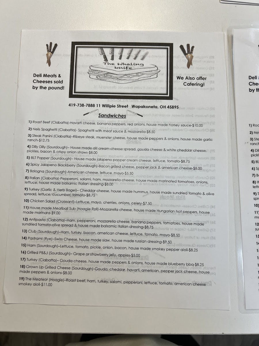 The Whaling Knife Menu